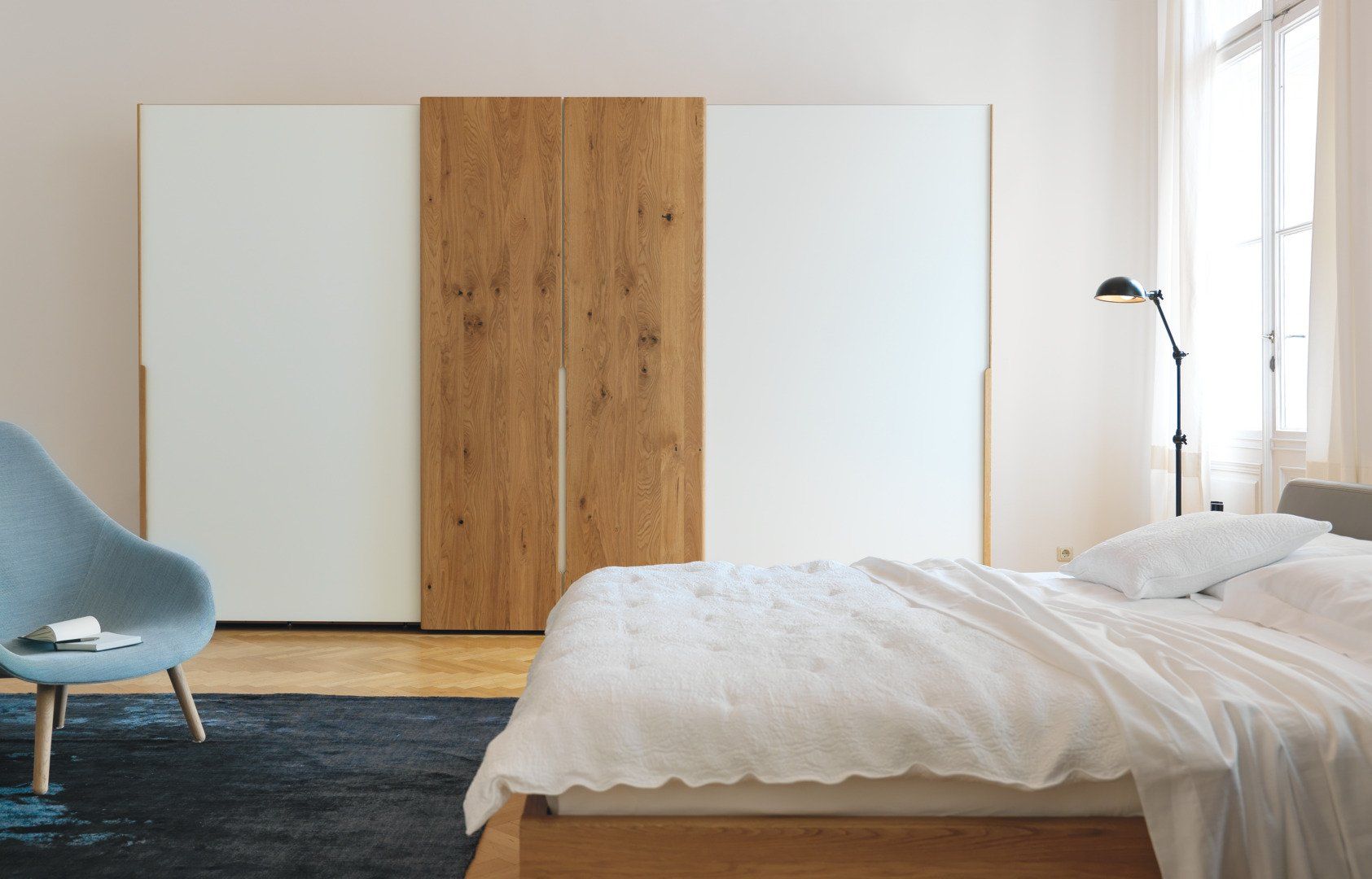 Das Schranksystem von Team7 lässt kaum einen Wunsch offen. Neben verschiedenen Fronten und der Wahl zwischen Dreh- und Schwebetüren haben Sie unzählige Möglichkeiten der Gestaltung.