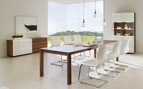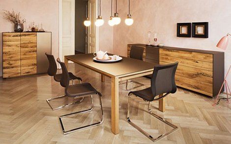 Mit der patentierten, gedämpften Ausschwenktechnik 2soft von Team 7 lassen sich beim Tisch Magnum die integrierten Einlegeplatten sanft und sicher öffnen und schließen.