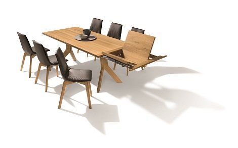 Der Yps Auszugstisch besticht mit der gleichen Formensprache wie der yps Fixtisch: kantig, puristisch, durch und durch aus echtem, solidem Naturholz. Diese Anmutung kommt vor allem in geschlossenem Zustand zum Ausdruck. Und selbst in ausgezogenem Zustand offenbart sich perfektes, durchgängiges Design bis ins Detail. Yps kann mit einer oder zwei Einlegeplatten in 60 cm Länge ausgestattet werden. Alternativ sind eine Kombination aus Einlegeplatte und Bestecklade sowie eine oder zwei Besteckladen möglich.