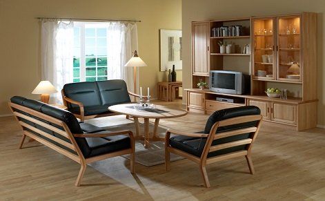 Die Garnitur 1240 besteht aus einem markanten Gestell, dass sehr gut mit den Tischen von Dyrlund kombiniert werden kann. Der Tisch 1511, mit einer 50 mm starken Tischplatte (hier abgebildet mit Schieferplatteneinlagen). Zusammen mit Frederiksborg Wandvitrine und TV Schrank, sowie unserer Captain’s Bar bekommen Sie ein schönes, leichtes Wohnzimmer.
